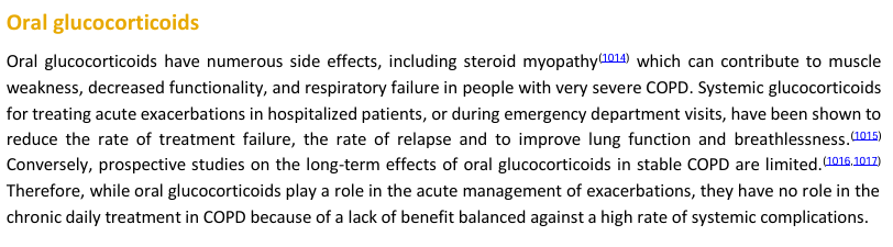 Oral Steroids is no longer recommended from long term chronic treatment of COPD.